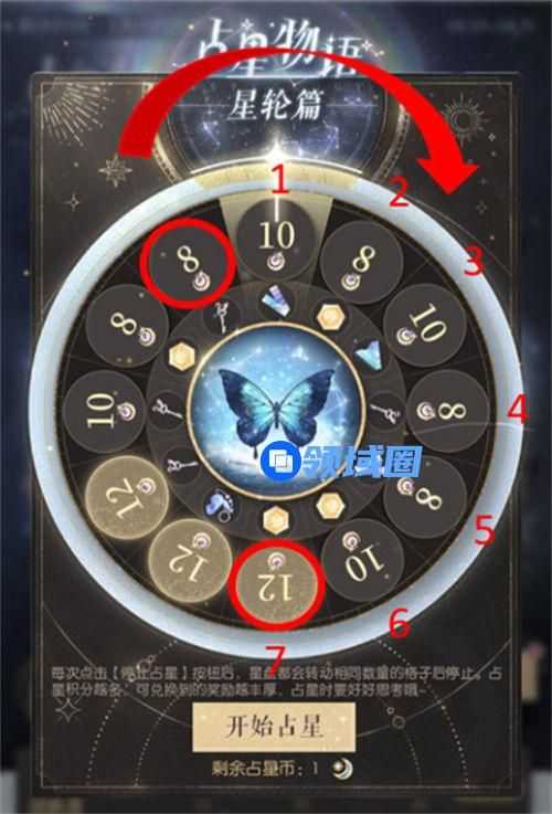 每次转之前要从分数12的位置倒数7格,看需要在哪里按停下。