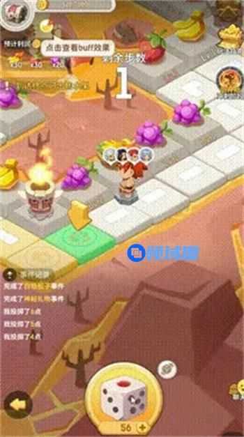 1、冒险者通过消耗骰子,进行点数投掷;根据点数,在棋盘上前进,在不同类型的果园停留后,可以摘到各种水果,同时还可能触发各种事件;