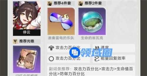 停云有其他能用的,停运攻击力到了可以用速度鞋,没到就用攻击鞋,停云e技能根据开技能时候的一瞬间攻击力来计算可以吃到雷套的效果,可以用快枪手和铁卫套,铁卫能保停云,快枪手基本不用成本;