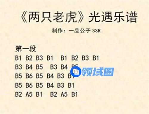 以上就是光遇两只老虎简谱详情介绍的全部内容,更多精彩内容攻略请持续关注领域圈,小编将持续更新更多相关攻略。
