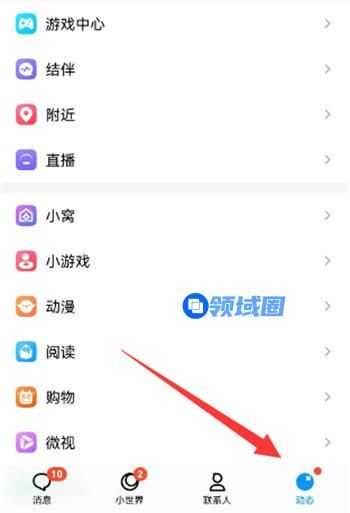 1、首先登录手机QQ,然后点击右下角【动态】,找到顶部的【游戏中心】。