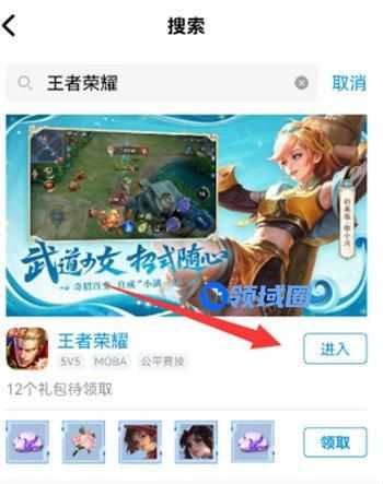 2、在游戏中心的搜索框中输入【王者荣耀】,找到下图搜索结果,点击进入。