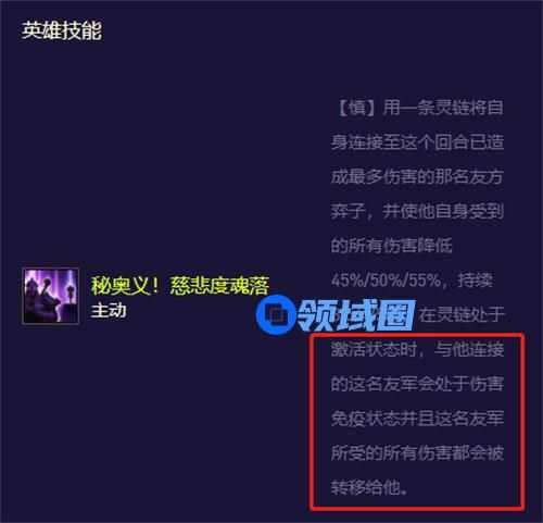反常增幅:提供1个【慎】。他的技能会持续额外的5秒并且与他连接的那名友军在被保护时会造成20%额外伤害。