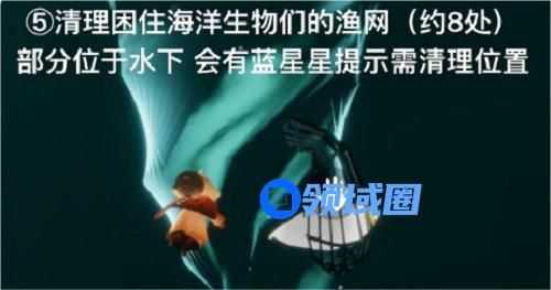 5.清理困住海洋生物们的渔网,约8处,部分位于水下会有蓝星星提示需清理位置。