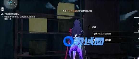 15、然后,走到右侧的货箱位置,把刚拿到的货箱放在它的中层位置,即可获取第三个宝箱啦~