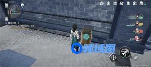 2、然后向小地图的左边走,到达下图中心的红框中,视角朝向小地图上方,就能看到在墙边的黄色桶;