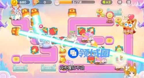 3、第四波之前做到道具全清是比较简单的,第一个来的是合体神仙,玩家要沿着路线放球拍,可以直接锁头打,建议放一倍数,不然很容易错过兔子;