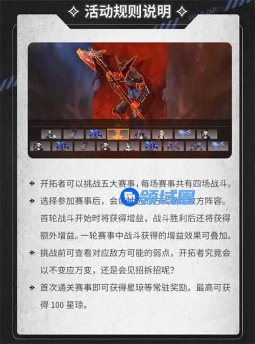 以上就是崩坏星穹铁道磐岩镇超级联赛活动玩法详情的全部内容,更多精彩内容攻略请持续关注领域圈,小编将持续更新更多相关攻略。