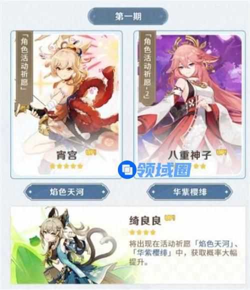 1、3.7版本上半期的卡池会复刻五星角色宵宫、八重神子。此外还会有一个新的四星角色绮良良。