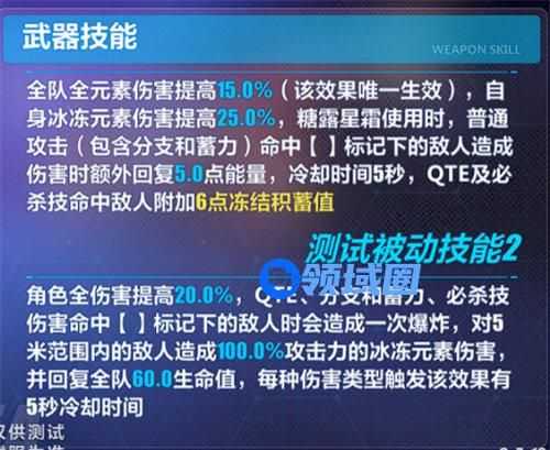 (2)被动技能:全队元素伤害提高12%,自身冰冻元素伤害提高20%等。