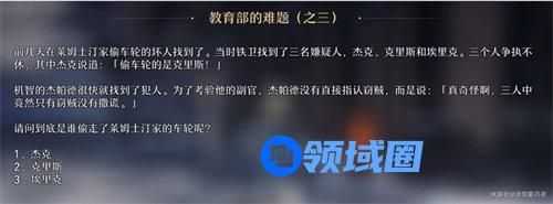 以上就是崩坏星穹铁道贝洛伯格教育部的难题全部答案详情攻略的全部内容,更多精彩内容攻略请持续关注领域圈,小编将持续更新更多相关攻略。