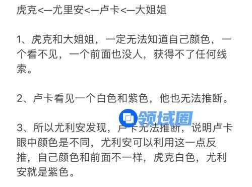 不过,虽然他们看不到,可我们路过时一眼就看到了:虎克和卢卡头上是白花,而尤利安和大姐姐头上是紫花。尽管虎克努力追求公平,可是这个游戏注定只有一个人能猜到自己头上纸花的颜色。请问那个人是谁呢?