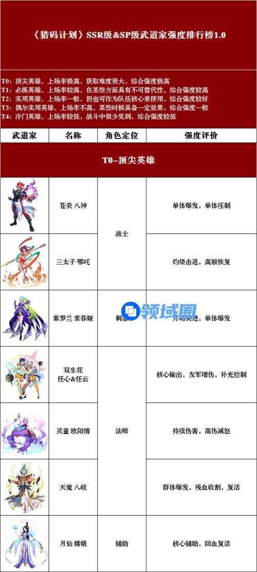 T0:顶尖英雄。上场率极高,获取难度很大,综合强度极高;