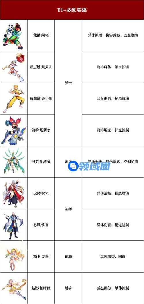 T1:必练英雄。上场率较高,在某些方面具有不可替代性,综合强度较高;