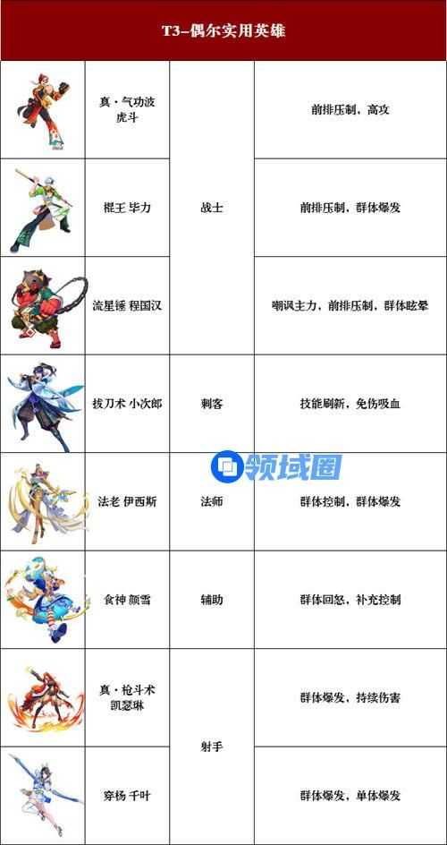 T3:偶尔实用英雄。上场率不高,某些时候具备一定效果,综合强度一般;