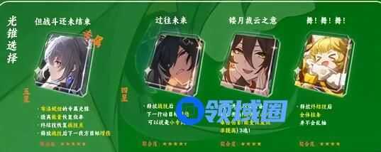 大月卡里的光锥,也是挺契合四星光锥,该光锥可以战斗开始以及装备者回合开始时,提高攻击力/暴击伤害/能量恢复效率提高,三选一,也是很不错的。