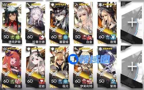 重装:塞雷亚(1技能专精三+一模)、临光(1技能专精三+1模)、泥岩(2技能专精三)