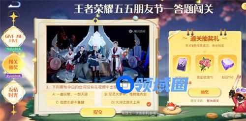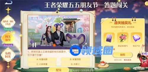 以上就是王者荣耀五五朋友节答题闯关答案详情大全的全部内容,更多精彩内容攻略请持续关注领域圈,小编将持续更新更多相关攻略。