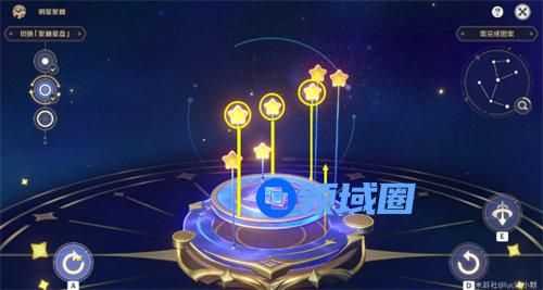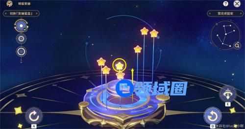 3、旋转外圈使外圈三个星星:两个在罗盘上方,一个在罗盘下方,整体偏右,直至全部发亮;