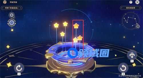 1、将内圈之中的三颗星星旋转到后面偏左的位置;