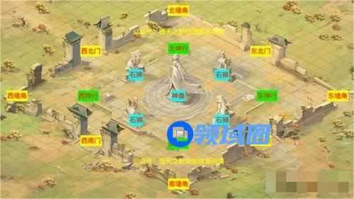 4.第三天(周三晚上8点~9点,建议8点到位)根据指挥设置白点进门,占领神行,占领神行后,出战的路径会大幅缩短,如果战乱激烈的话,周三晚上消耗行军令非常多,任务就是把神像,石狮围起来。