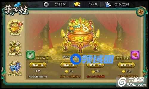 聚宝盆功能在《葫芦娃》中有着非同一般的特殊地位,因为玩家们可以在这里获取游戏中的高阶资源,比如说可以大幅度提升英雄经验的灵芝、葫芦娃精华、甚至是法宝碎片也有机会抽到,下面我们一起去看看吧!