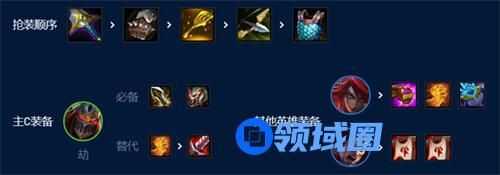 劫必备泰坦无尽,第三件吸血装,饮血容错高,正义爆发高,然后做1到2个棋子提升启动,下来就是卡特的装备,法爆正义离子,要是有裁决转也可以给卡特换离子很强。