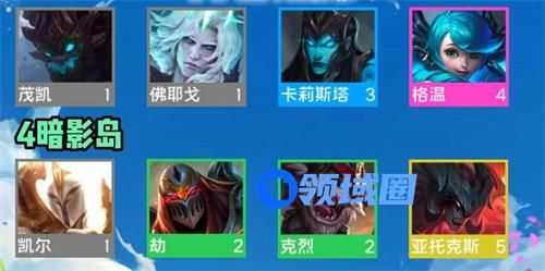 2、阵容羁绊:4暗影岛5杀手2潜行1暗裔;