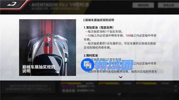 在抽到传奇车辆时,极限组、性能组、运动组的概率是均等的,抽到对应组别传奇车辆有75%的概率会抽中当期活动车辆。