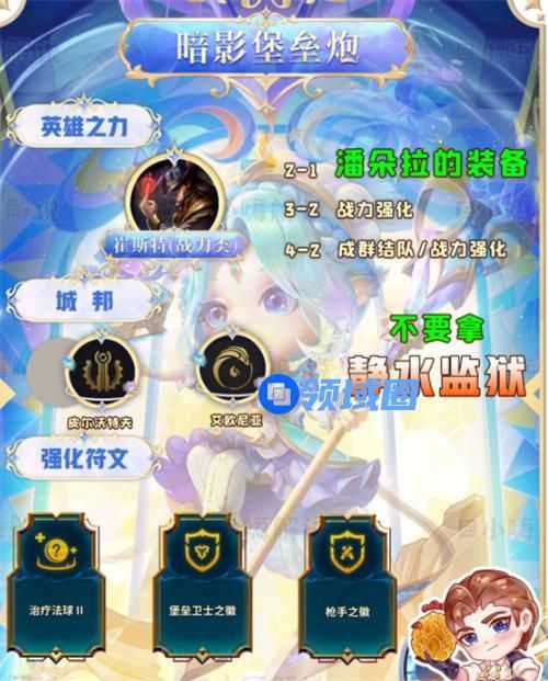 5、强化符文:了解你的敌人、治疗法球、枪斗术、枪手/堡垒之徽、治疗法球、珠光莲花等