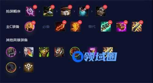 装备上优先考虑鬼索的狂暴之刃,之后就考虑前排坦度装备,救赎狂徒有就可直接合成,有鬼索后在考虑泰坦(鬼索是核心)。