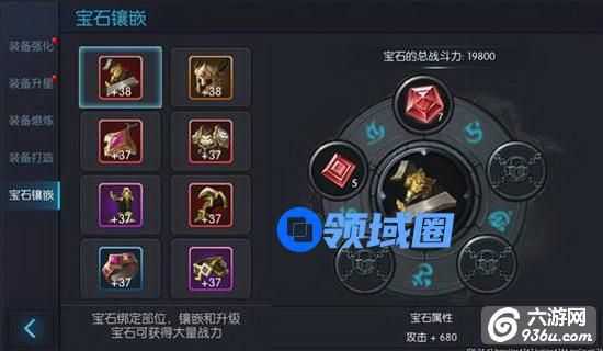 每一件装备有其对应适配的宝石,比如武器只能镶嵌攻击宝石,宝石镶嵌后不能摘除,通过点击宝石吞噬其他宝石升级。