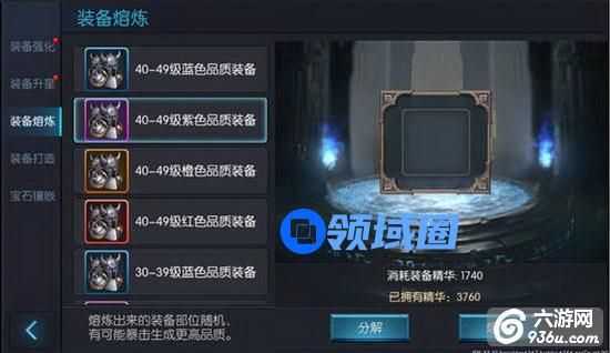 玩家可以通过分解多余的装备获得装备精华,来熔炼高品质的装备