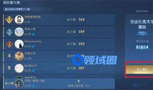5、点击“加入赛区”即可完成认证;