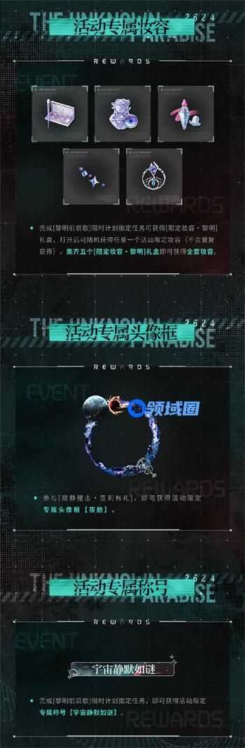 完成[黎明前哀歌]限时计划指定任务,即可获得活动限定专属称号【宇宙静默如谜】。