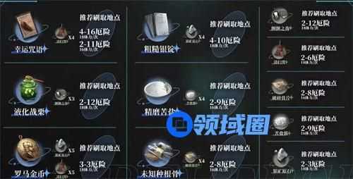 3、以上关卡材料的掉率比较高并且掉落的其他物品也比较有用,建议以玩家们根据需要选择刷取。