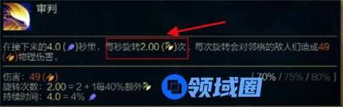 德玛西亚盖伦在新版本的技能是E技能,即转圈圈。这个技能会随着攻速的提升,提升盖伦的转速,而法强的增高能够提高盖伦技能时间。因此盖伦在搭配高额攻速+高主宰羁绊提高坦度时,就能够无脑打出高额伤害。