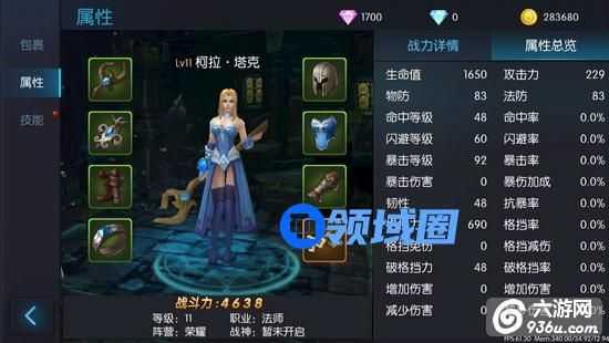 点击屏幕下方“背包”图标进入,在左侧找到属性栏即可查看角色包括装备、战力、和属性相关信息,这里目前只说明属性信息。