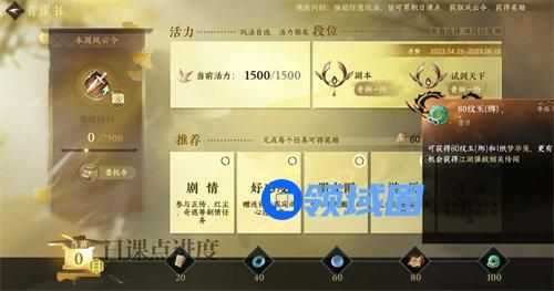 1、在游戏主页面右上方点击“青崖书”图标,通过完成该页面的任务和活动,累计2500的风云令后即可获得委托令。