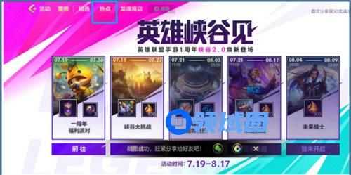 3、在热点界面,滑动左侧导航,在最底部可以找到峡谷战力报;
