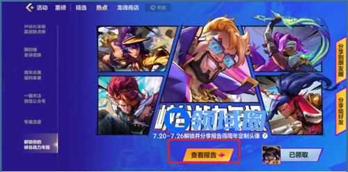 4、接着点击【查看报告】就可以进入个人峡谷战力报了;