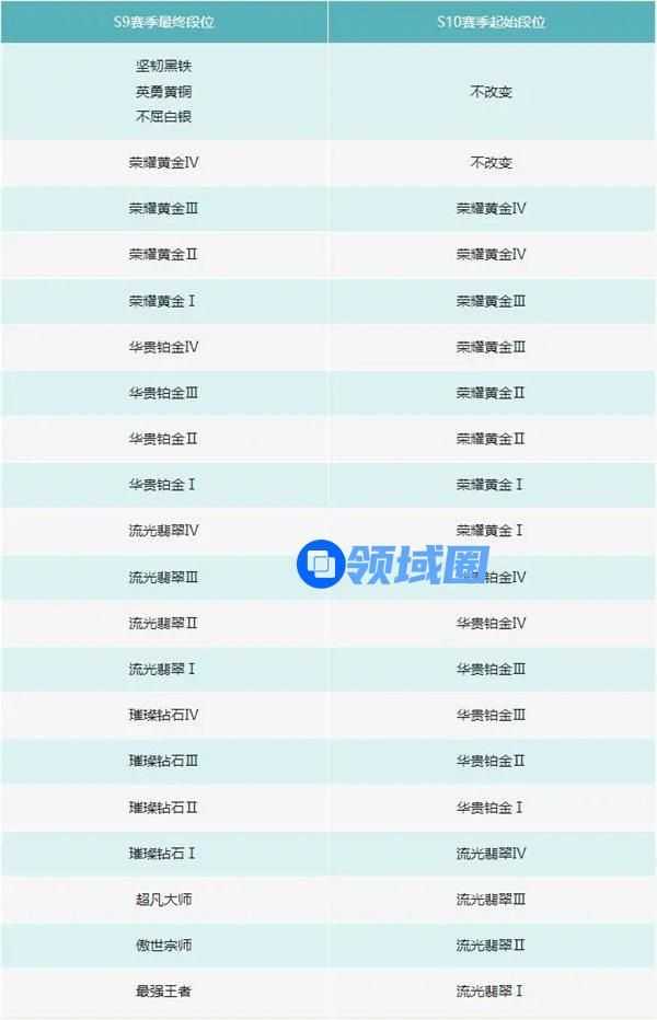 S10新赛季的起始段位将取决于S9赛季结束时的最终段位