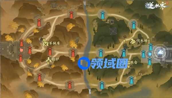 2.地图上有4个资源点,分别是军械库,锻炉,粮仓,伐木场(地图上会标出来),类似于传统MOBA的“野区”。