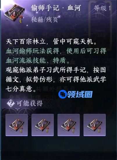 用来提升对应流派偷师技能和特质的等级(可以使效果变强、并且可以提高修为)