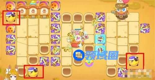 2.钱袋周围道具打掉,继续放置船锚,再放毒气瓶,然后开启三个宝箱;
