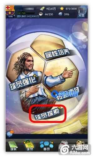 游戏主界面中,点击“球员”即可看到“球员探索”,点击“球员探索”进入。