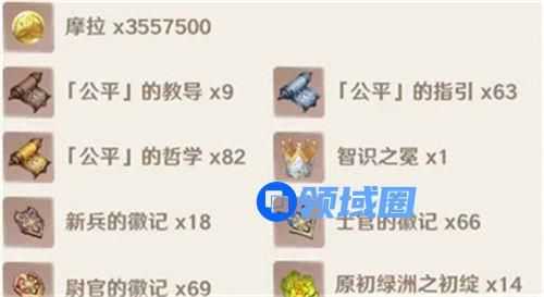 2级:【公平】的教导*3、新兵的徽记*6、12500摩拉