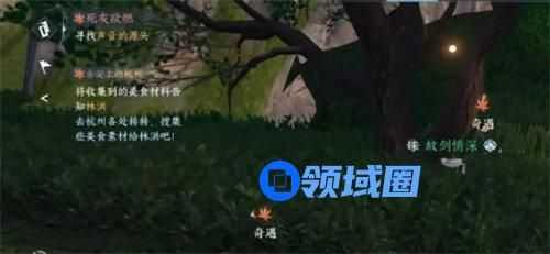 2、紧接着寻找声音的源头,跟随任务指引,找到下图大树下段大哥位置触发奇遇。