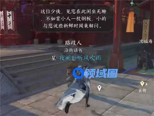 1、我们需要在汴京城(1060,880)找到NPC路岐人触发奇遇“锦伞红衣”,对话选项记得选赏他一文钱。