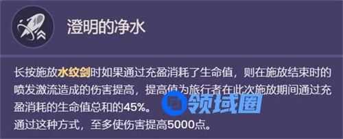 4、当旅行者的生命值高于50%时,将持续消耗生命值,并提高水泡伤害以及角色的生命值。